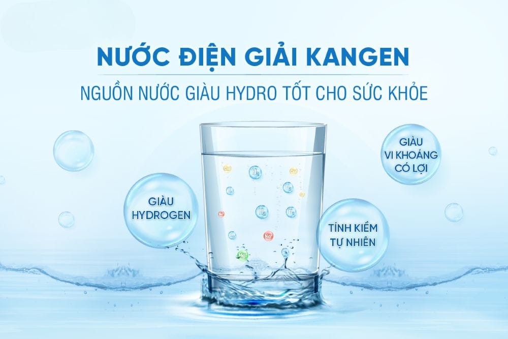 Nước Kangen là loại nước ion kiềm được tạo ra bằng công nghệ điện giải hiện đại, nổi tiếng tại Nhật Bản. Điểm đặc biệt của nước ion kiềm Kangen là chứa hydro hoạt tính, giúp chống oxy hóa mạnh và cân bằng pH cơ thể. Ngoài ra, nước ion kiềm Kangen còn có ORP âm, giúp trung hòa các gốc tự do, từ đó hỗ trợ sức khỏe tổng thể, đặc biệt là tim mạch.